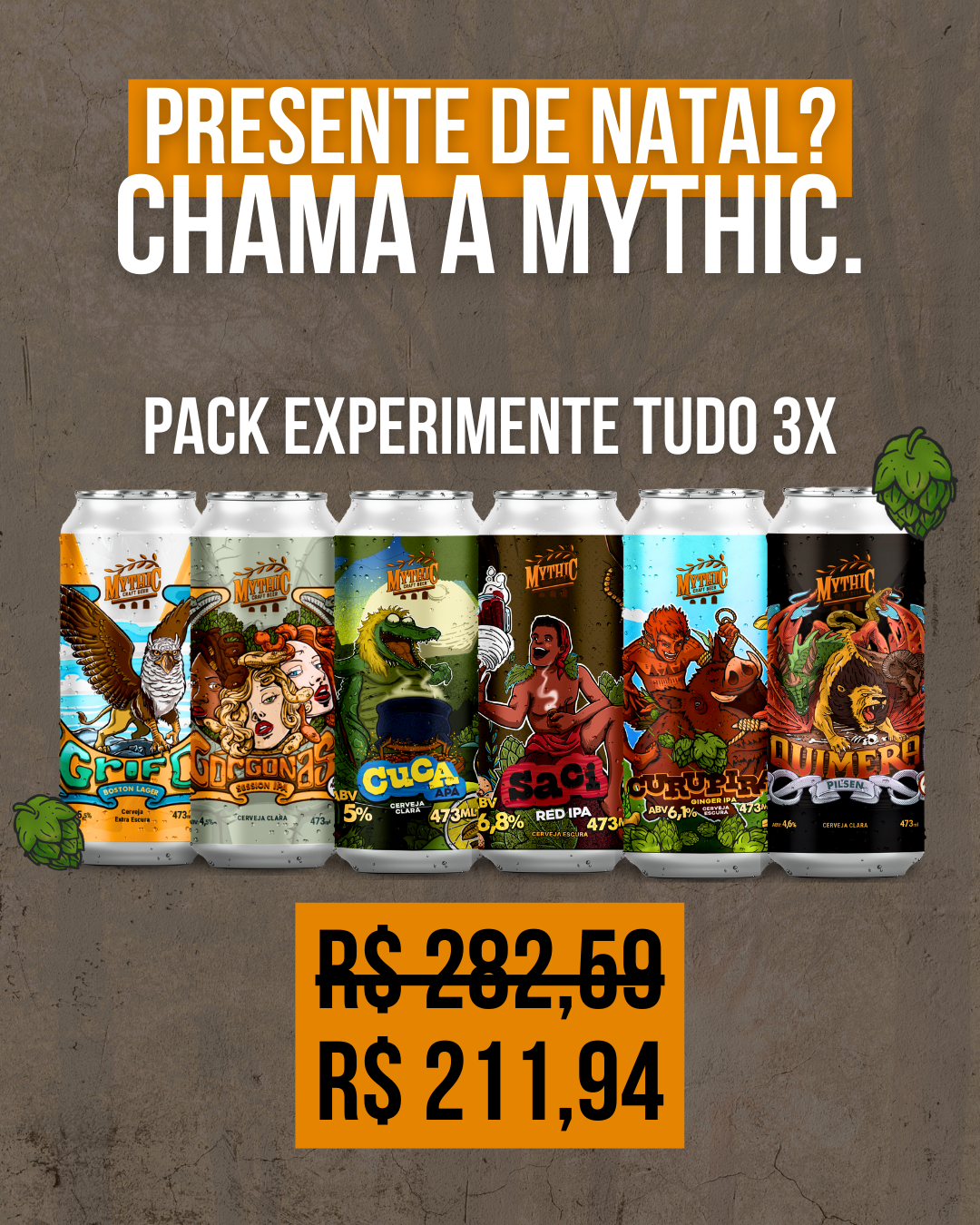 O Pack Experimente Tudo 3x traz o sabor completo do universo Mythic Beer